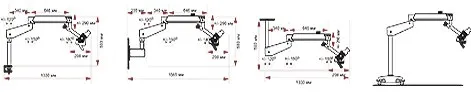У данной модели стоматологического микроскопа есть настенный, потолочный, напольный мобильный, напольный фиксированный и настольный вариант крепления;