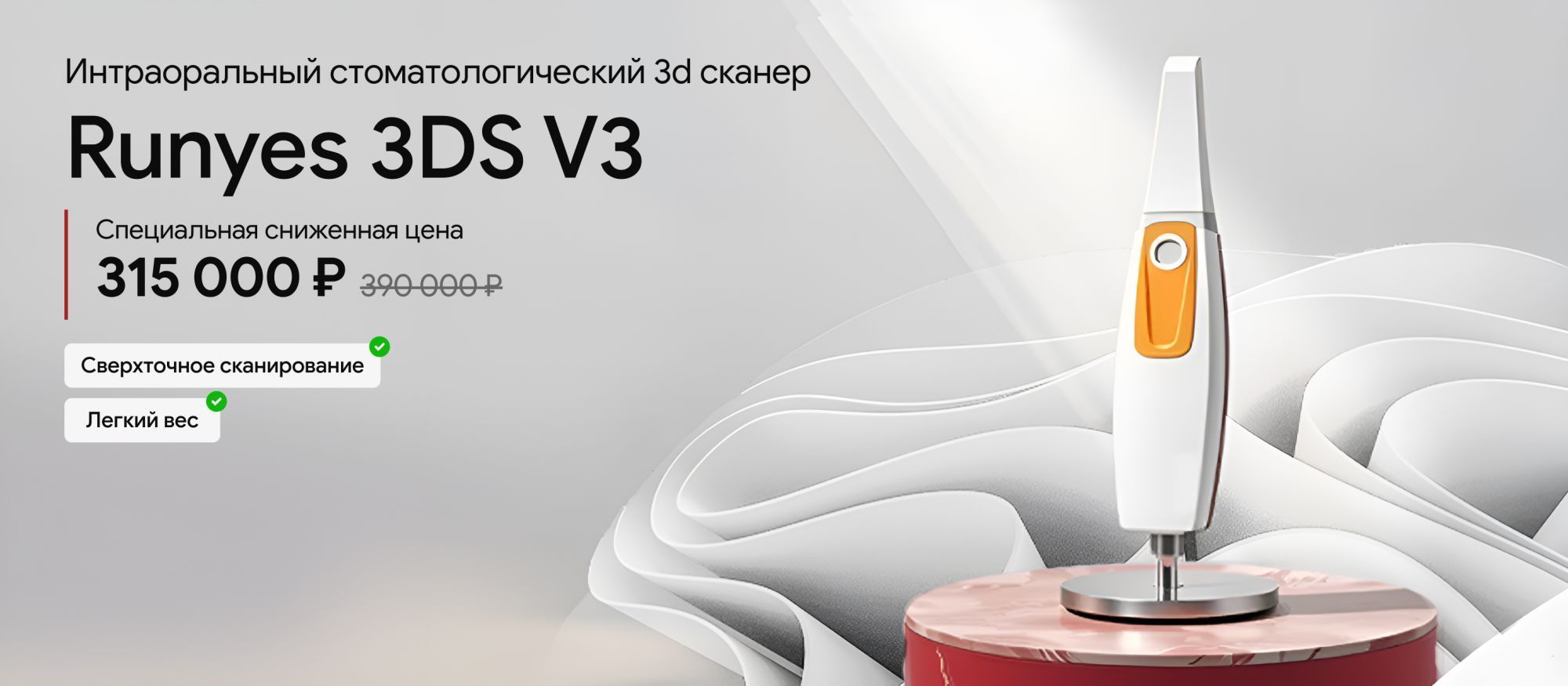 Мы рады предложить вам уникальную скидку на интраоральную камеру — незаменимый инструмент для диагностики и улучшения качества обслуживания пациентов. Используя камеру, вы сможете детально исследовать ротовую полость пациента и наглядно показывать ему проблемы, что способствует большему доверию и повышению уровня удовлетворенности.